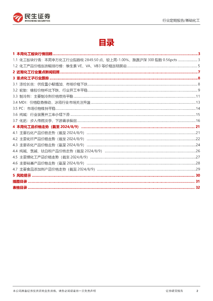 民生证券:化工行业周报(-):受供给端变动影响VA、VE价格涨幅居前,再生资源利用计划进一步得到推动.pdf