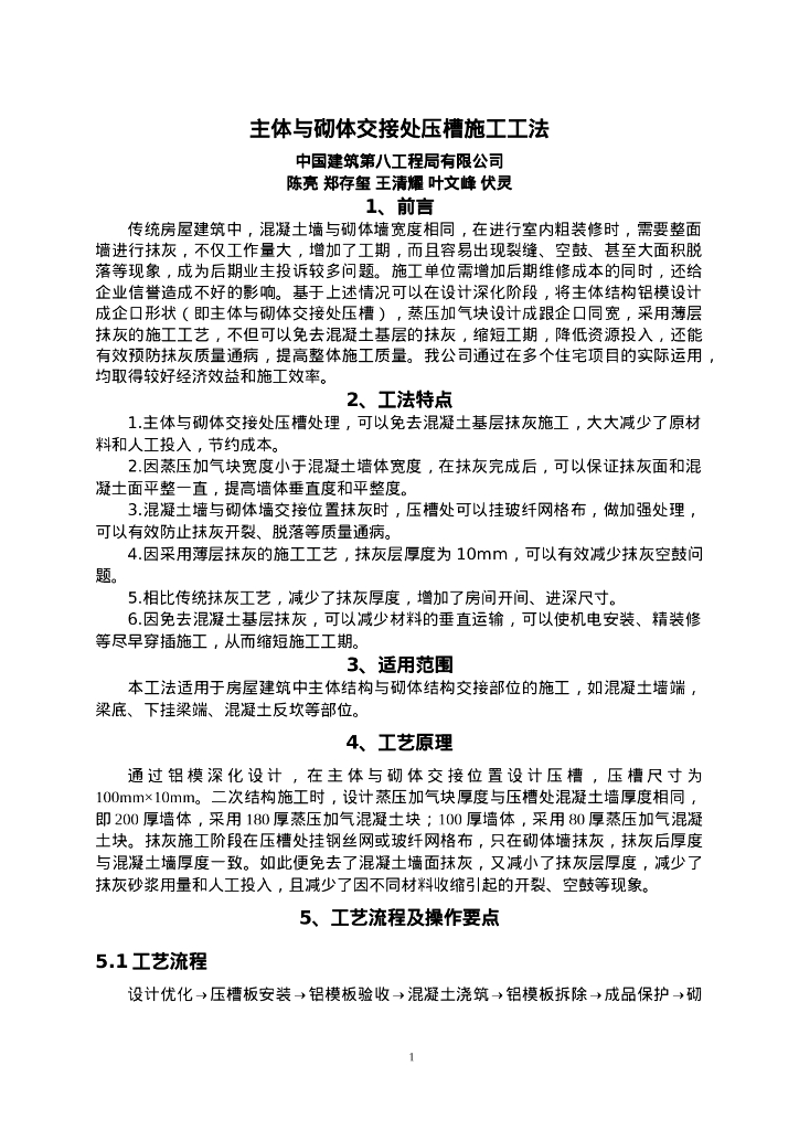 QHGF-2022046 主体与砌体交接处压槽施工工法.doc