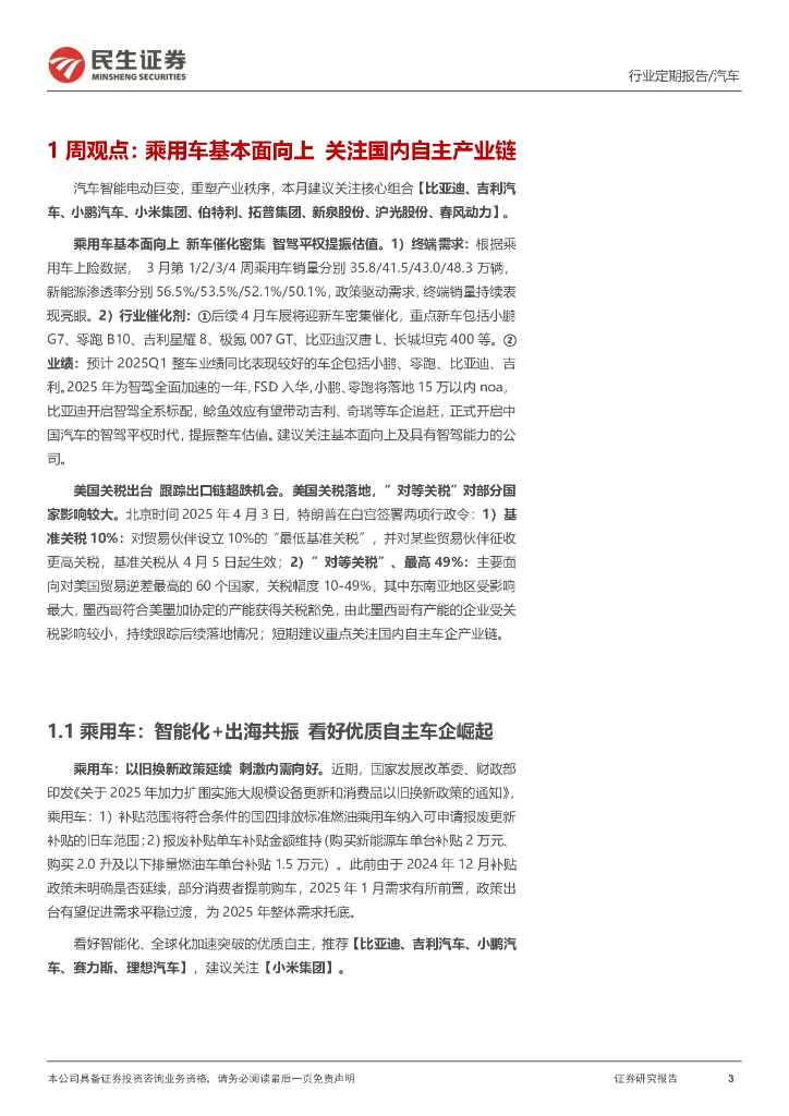 民生证券:汽车和汽车零部件行业周报:乘用车基本面向上关注国内自主产业链.pdf