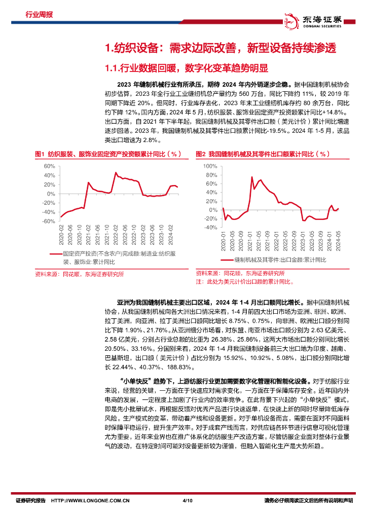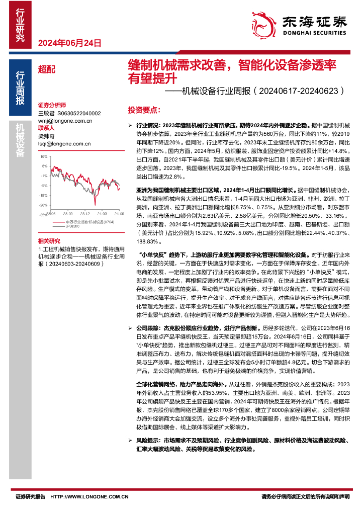 东海证券:机械设备行业周报:缝制机械需求改善,智能化设备渗透率有望提升.pdf