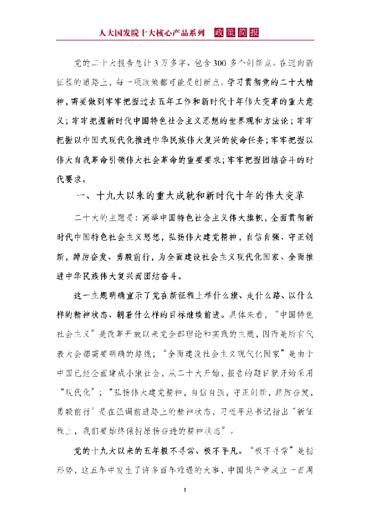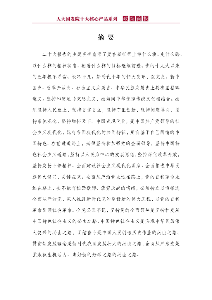 人大国发院:国发院政策简报第一百三十九期:新时代新征程的奋进指南 ——党的二十大报告重点解读.pdf