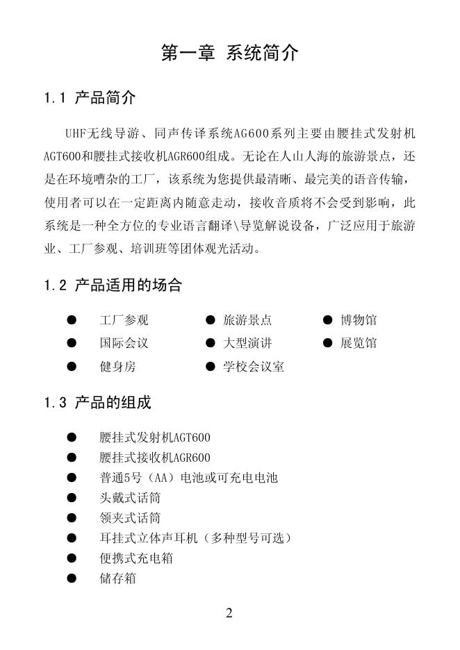 UHF无线导游、同声传译系统AG600系列 用户手册.pdf