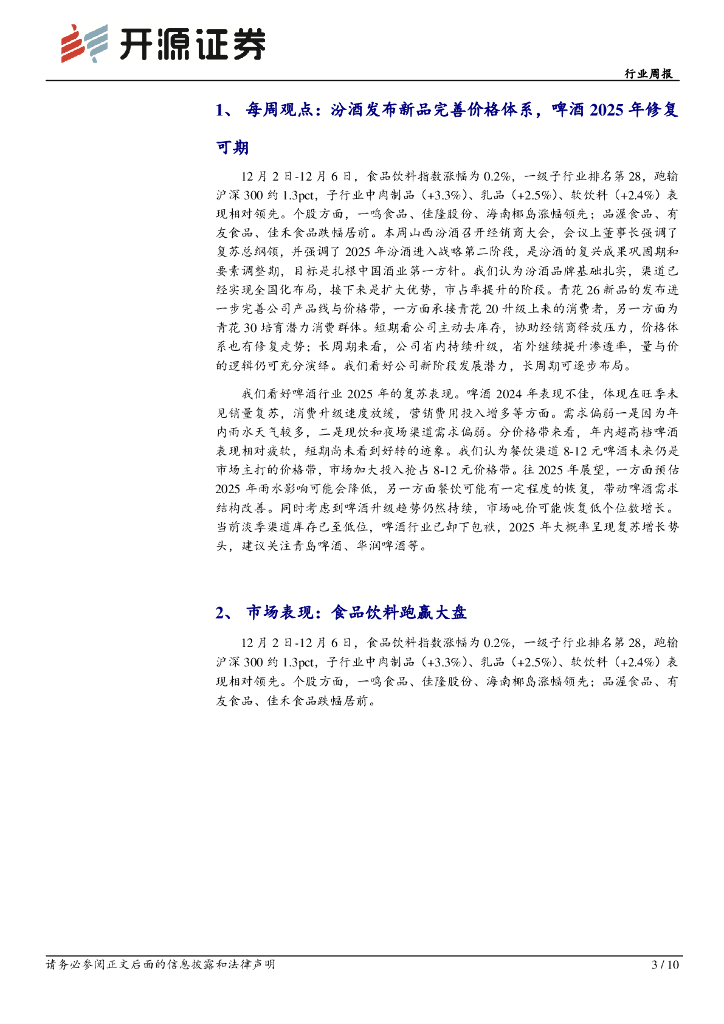 开源证券:食品饮料行业周报:汾酒战略新布局,看好啤酒复苏表现.pdf