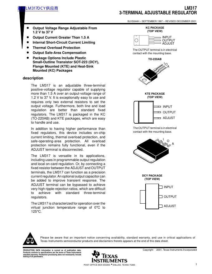 TEXAS INSTRUMENTS LM317 数据手册.pdf