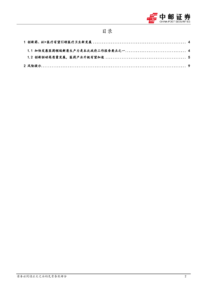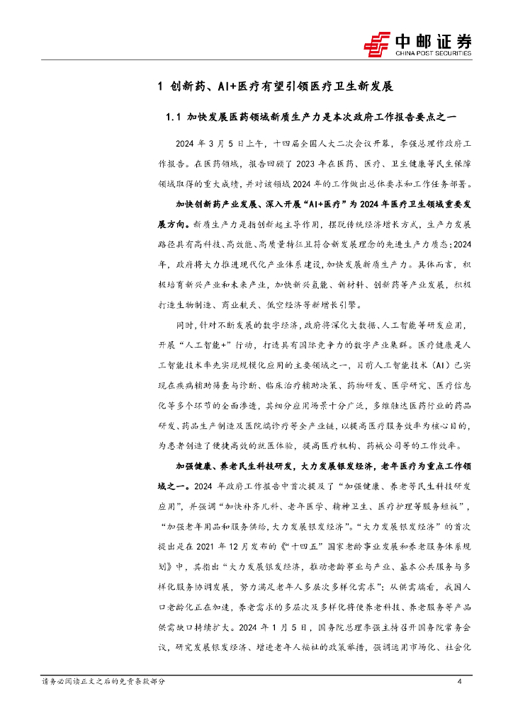 中邮证券:医药生物——创新药、“AI+医疗”有望引领医药产业新发展.pdf
