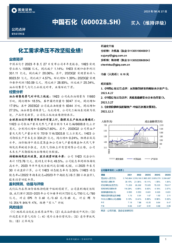 国金证券:中国石化(600028)-化工需求承压不改坚挺业绩!.pdf