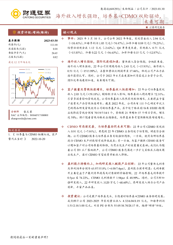 财通证券:奥浦迈(688293)-海外收入增长强劲,培养基+CDMO双轮驱动,未来可期.pdf