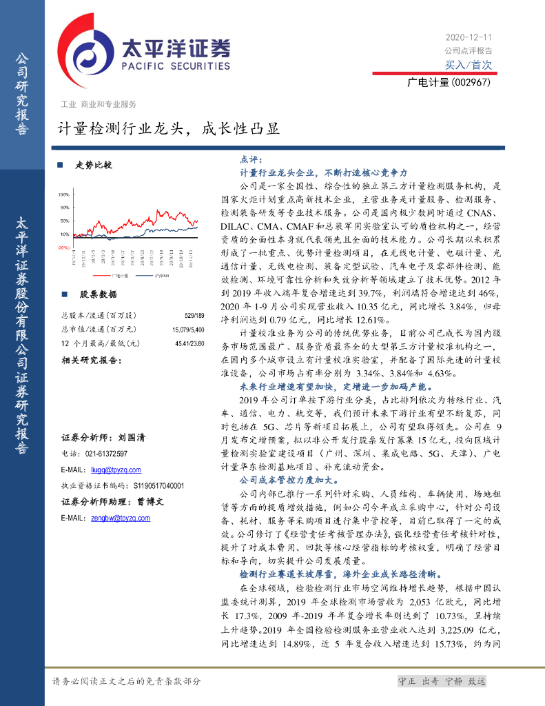 太平洋证券:广电计量(002967)-计量检测行业龙头,成长性凸显.pdf
