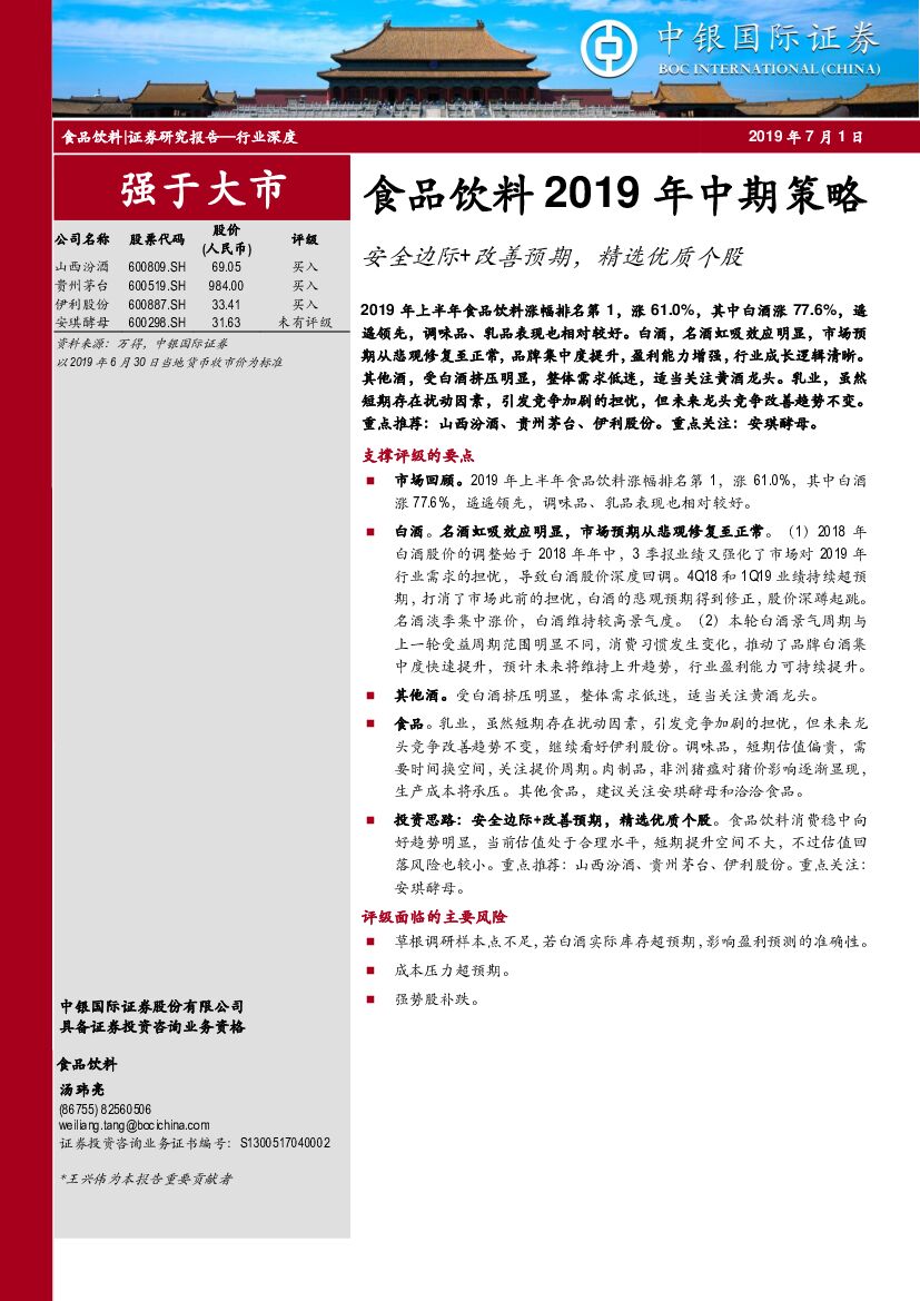 中银国际:食品饮料2019年中期策略:安全边际+改善预期,精选优质个股.pdf