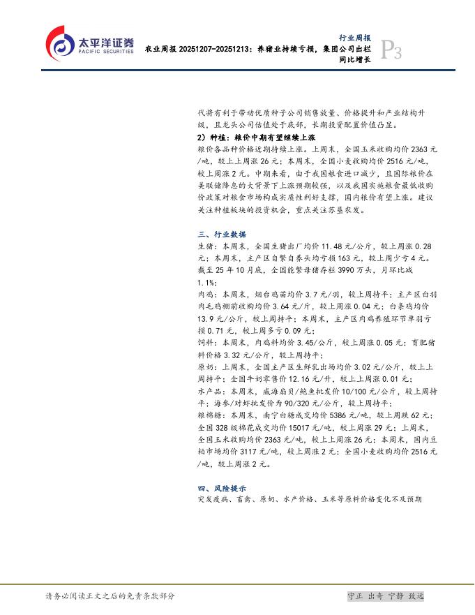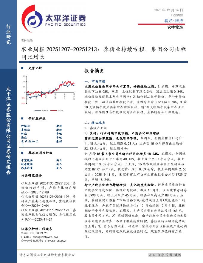 太平洋证券:农业周报:养猪业持续亏损,集团公司出栏同比增长.pdf
