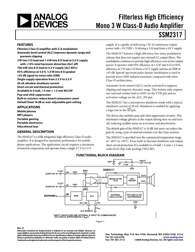 ANALOG DEVICES ssm2317 英文产品数据手册 Rev A.pdf