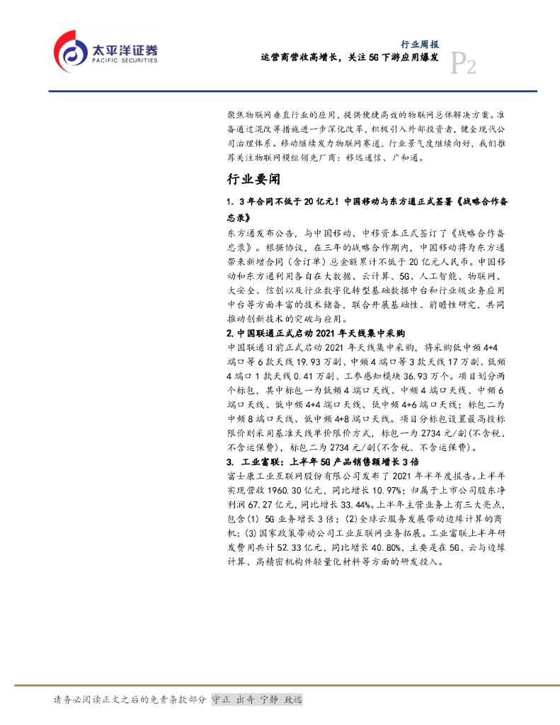 太平洋证券:通信设备Ⅲ行业周报:运营商营收高增长,关注5G下游应用爆发.pdf