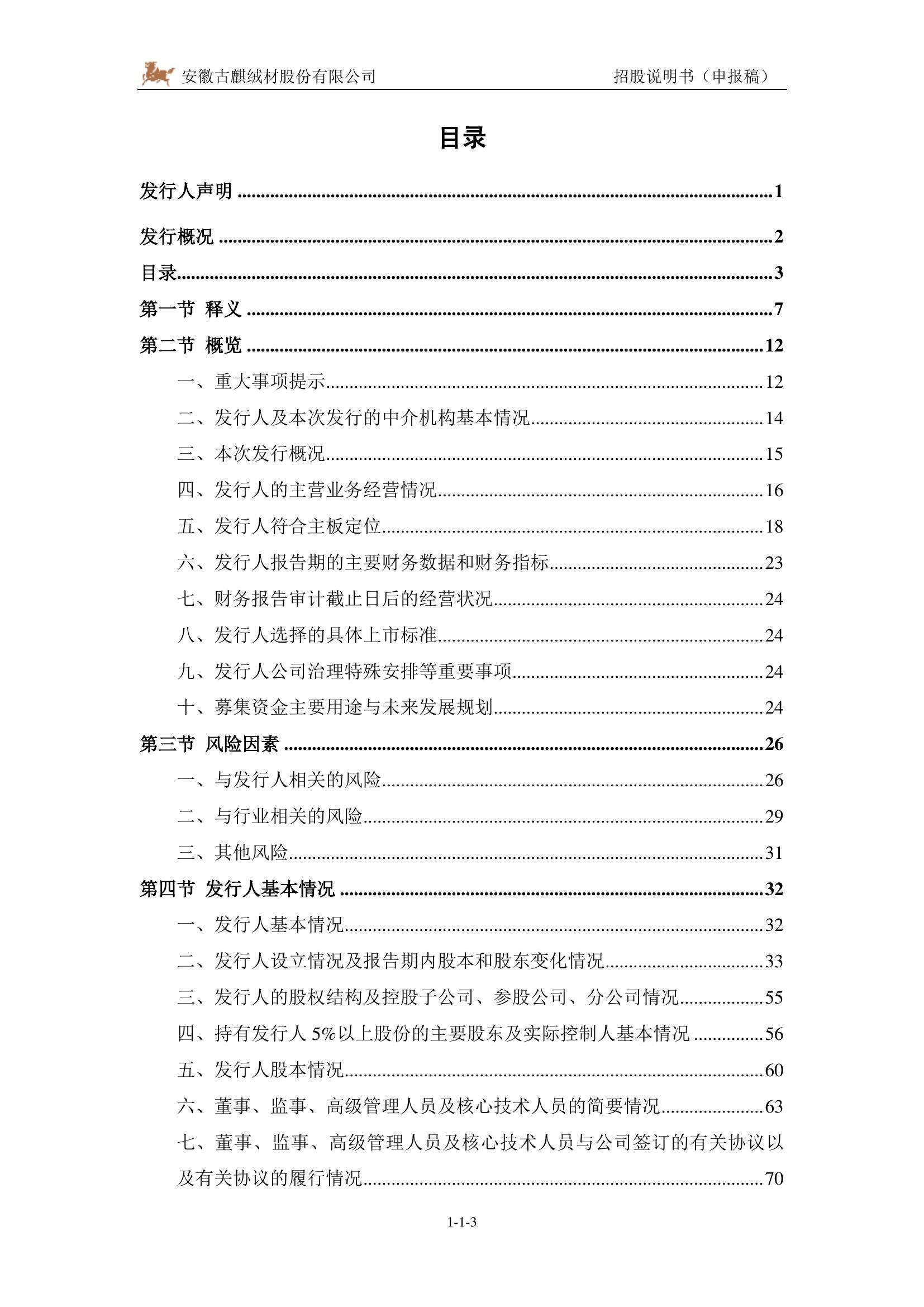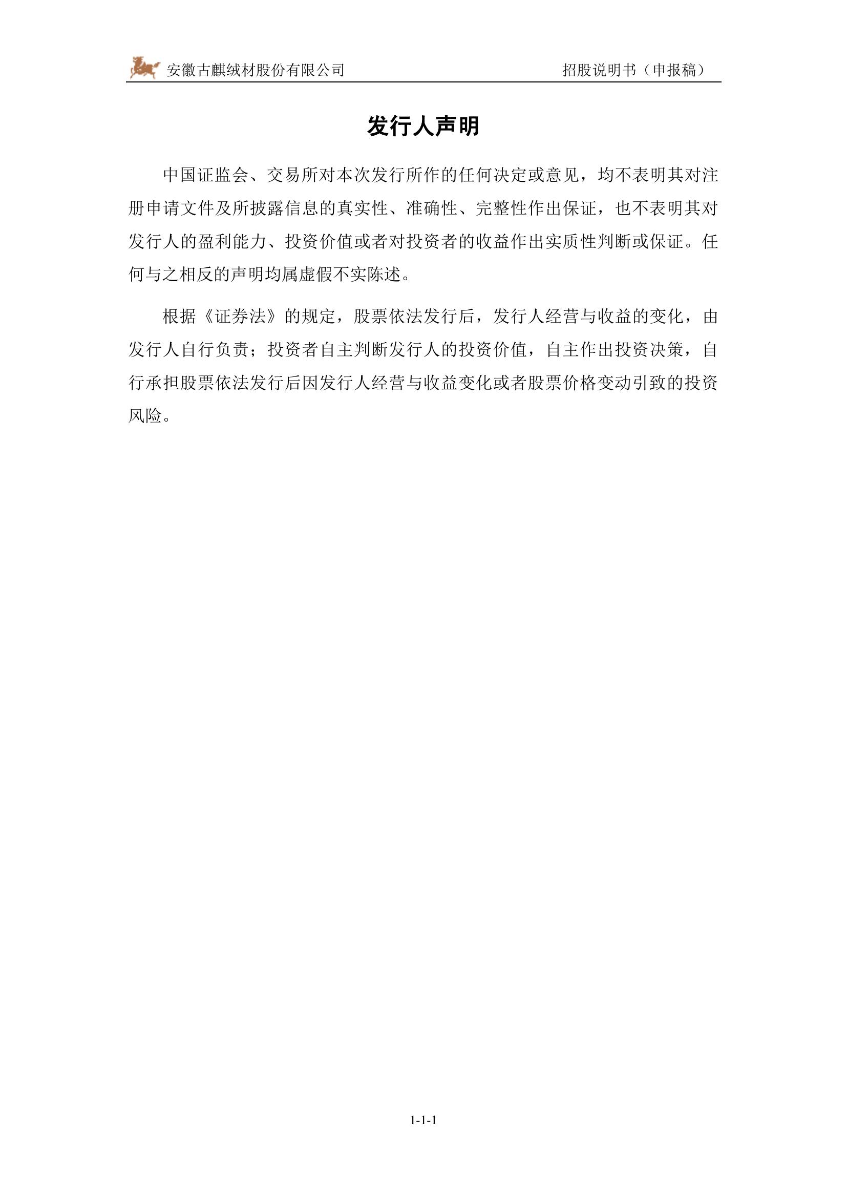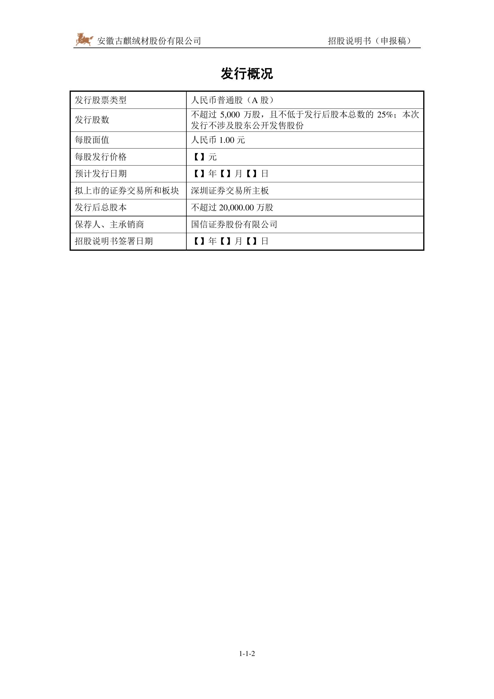 安徽古麒绒材股份有限公司深主板IPO上市招股说明书.pdf