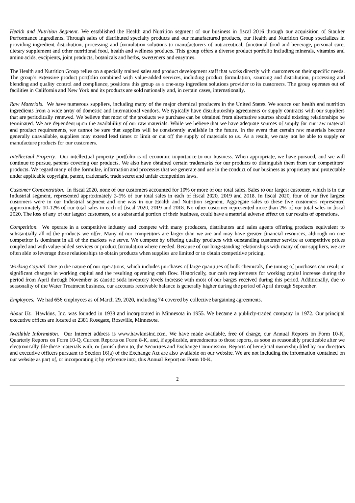 Hawkins Inc.(HWKN)2020财年年度报告(英文版).pdf