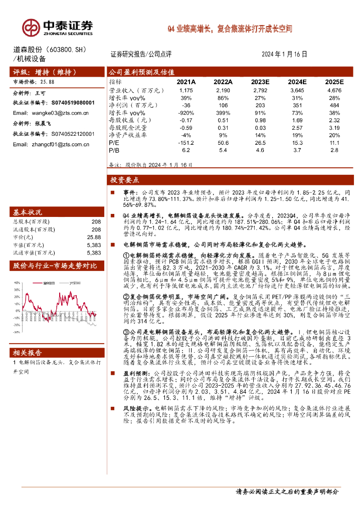 中泰证券:道森股份(603800)-Q4业绩高增长,复合集流体打开成长空间.pdf