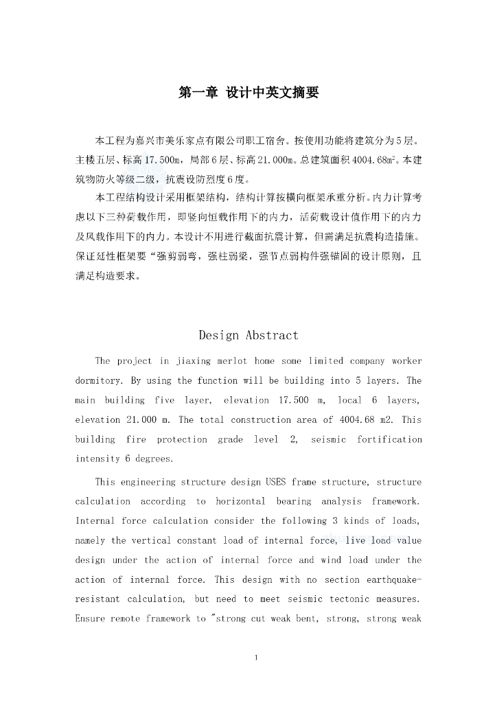 4405平米五层框架职工宿舍结构计算毕业设计(Word.99页).doc