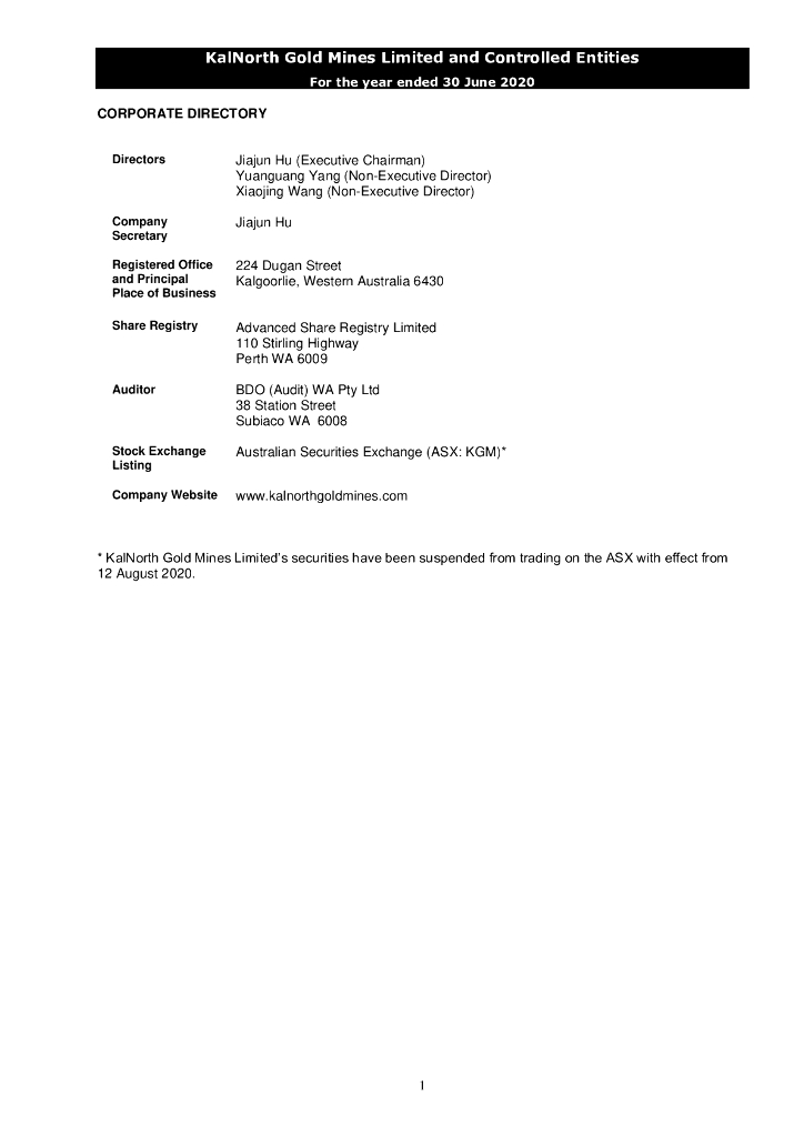 KalNorth Gold Mines Limited(KGM)2020财年年度报告(英文版).pdf