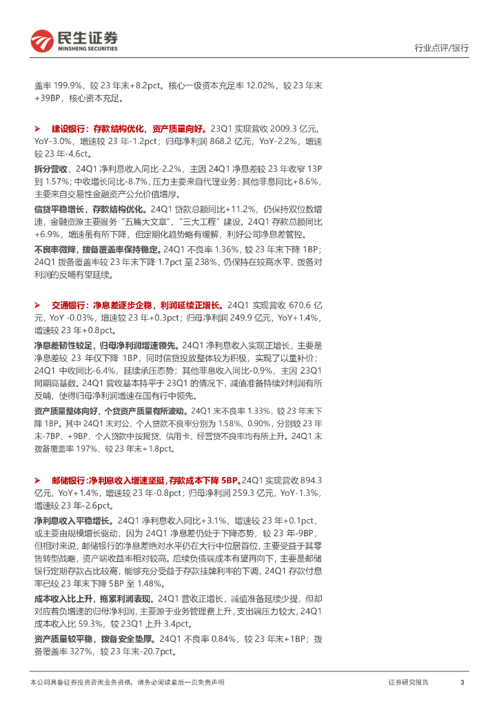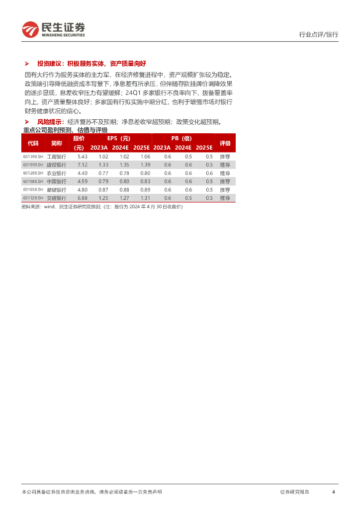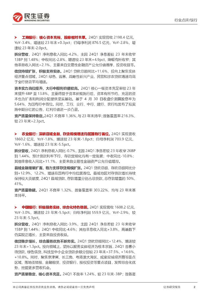 民生证券:六家国有大行2024年一季报点评:业绩小幅负增,酝酿中期分红.pdf