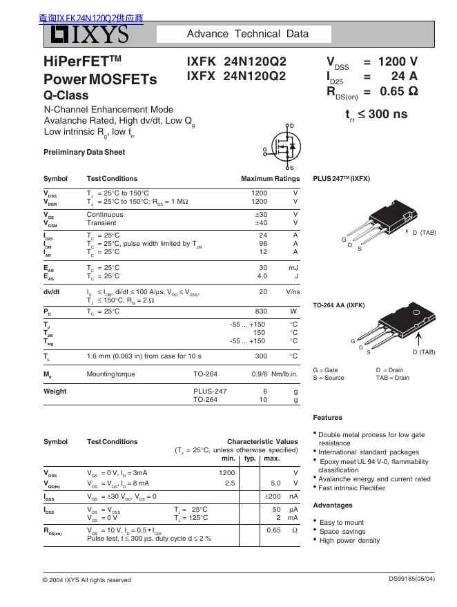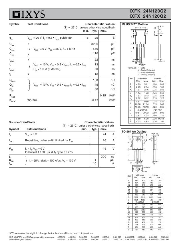 IXYS IXFK 24N120Q2 / IXFX 24N120Q2 数据手册.pdf
