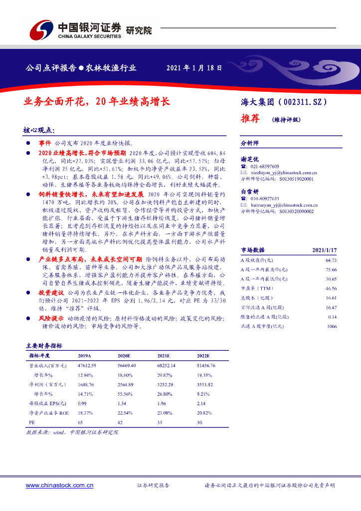 中国银河:海大集团(002311)-业务全面开花,20年业绩高增长.pdf
