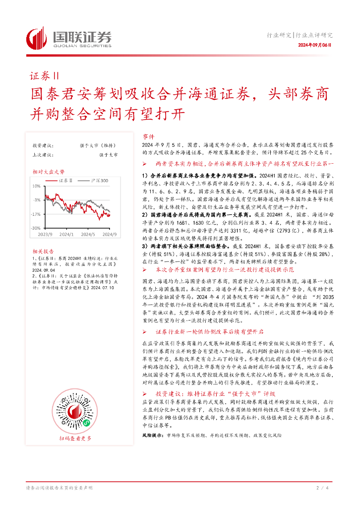 国联证券:证券Ⅱ行业点评研究:国泰君安筹划吸收合并海通证券,头部券商并购整合空间有望打开.pdf