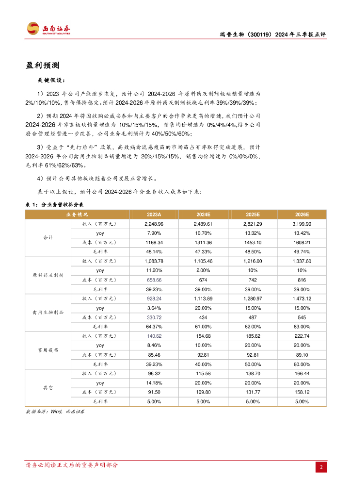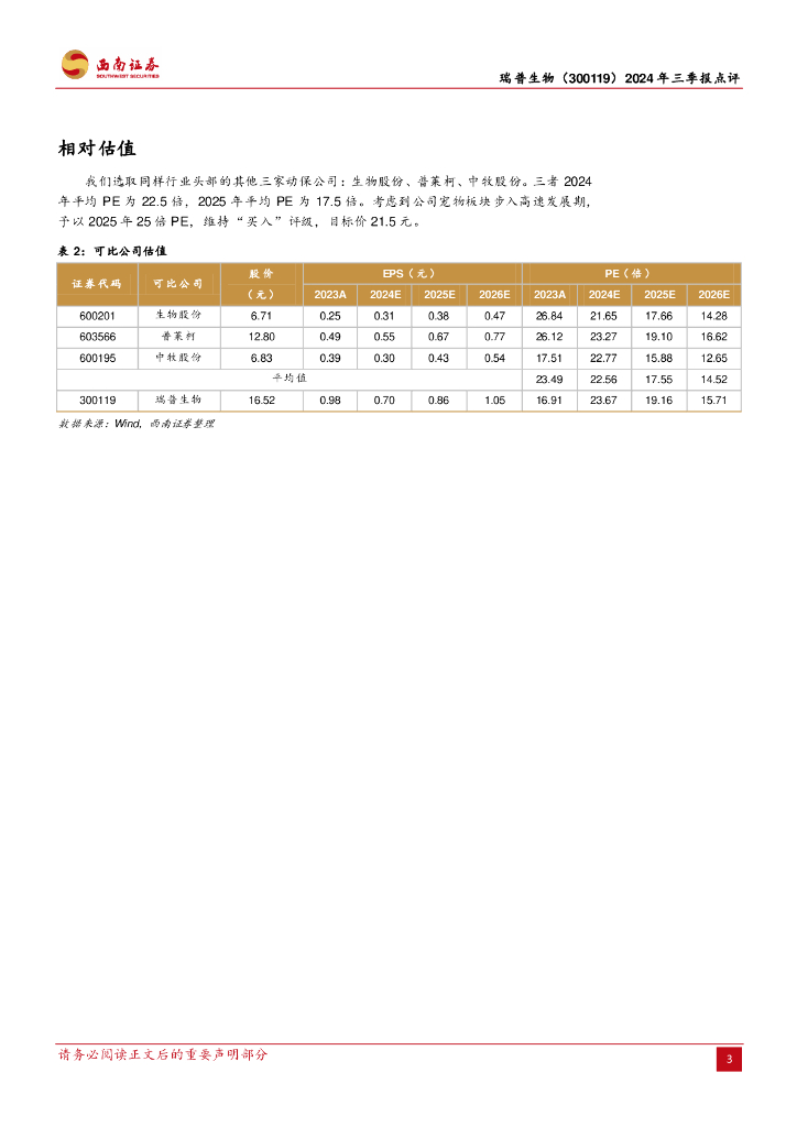 西南证券:瑞普生物(300119)-2024年三季报点评:营收稳增利润降,持续探索新征程.pdf
