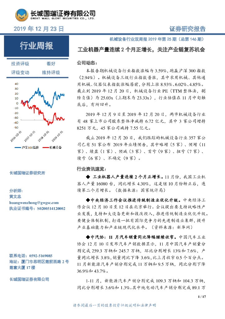 长城国瑞证券:机械设备行业双周报2019年第25期(总第146期):工业机器产量连续2个月正增长,关注产业链复苏机会.pdf