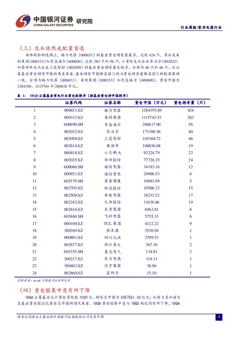 中国银河:家用电器行业点评报告:18Q4基金家电股持仓比例有所下滑.pdf