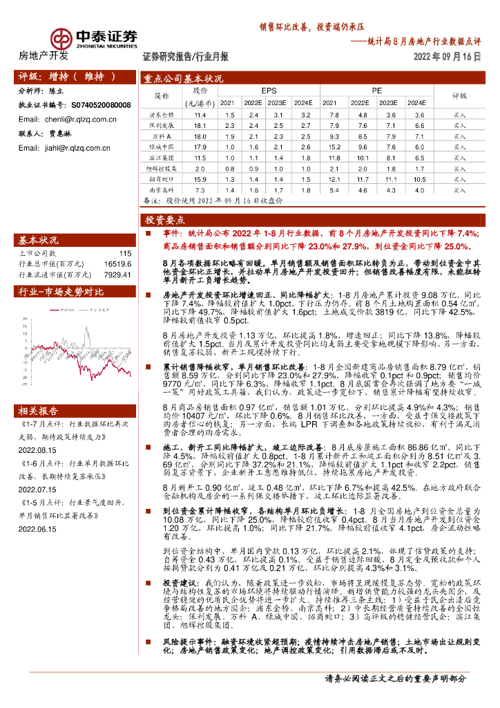 中泰证券:房地产开发统计局8月房地产行业数据点评:销售环比改善,投资端仍承压.pdf