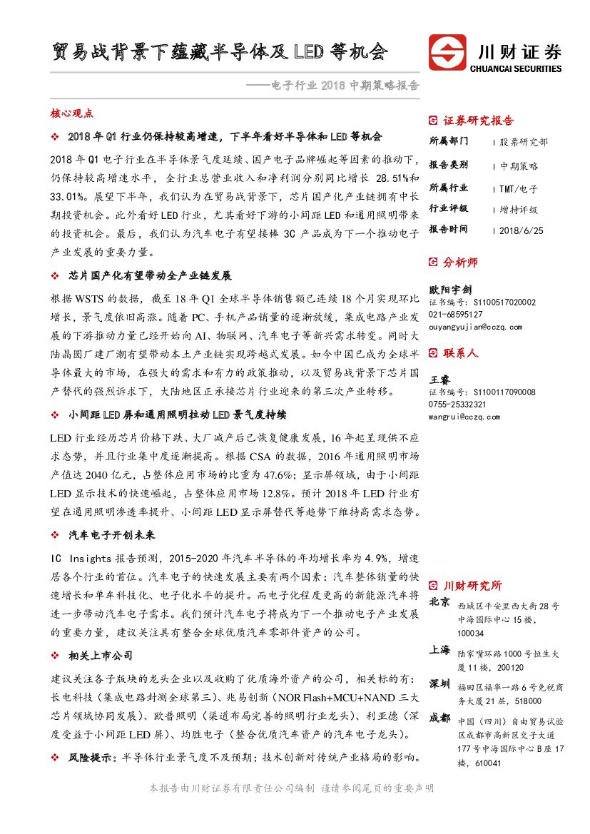 川财证券:电子行业2018中期策略报告:贸易战背景下蕴藏半导体及LED等机会.pdf