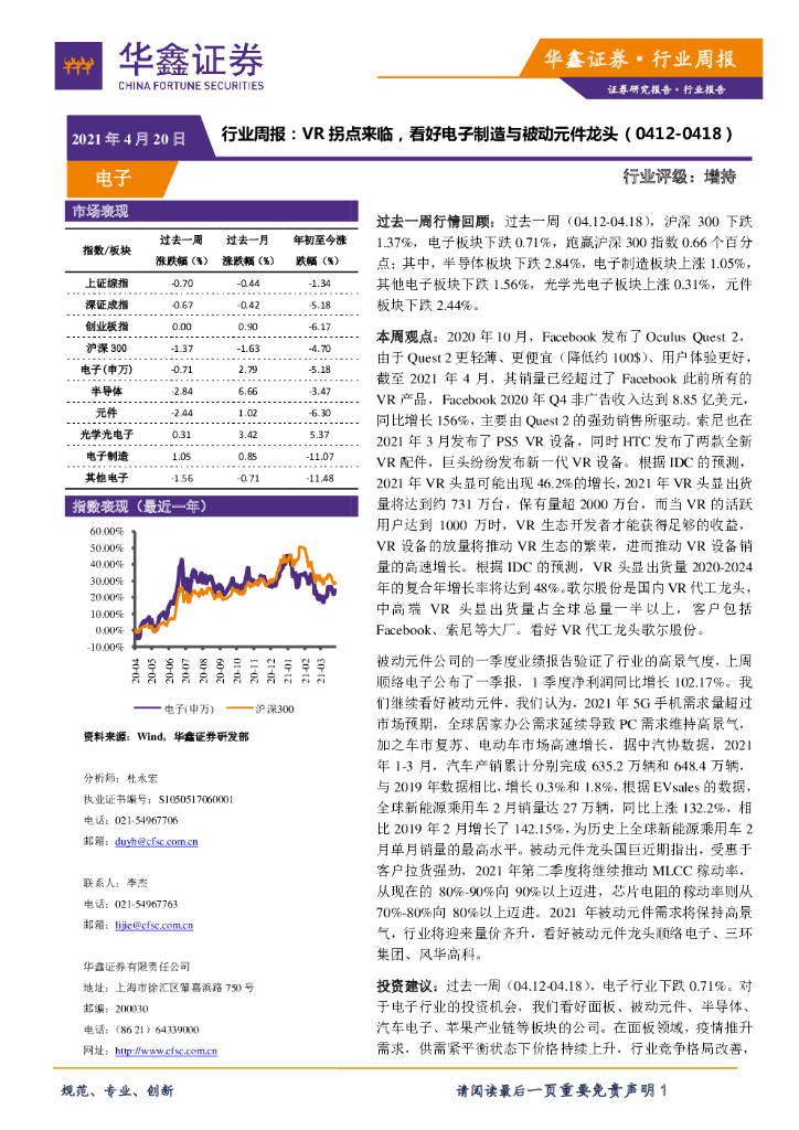华鑫证券:电子行业周报:VR拐点来临,看好电子制造与被动元件龙头.pdf