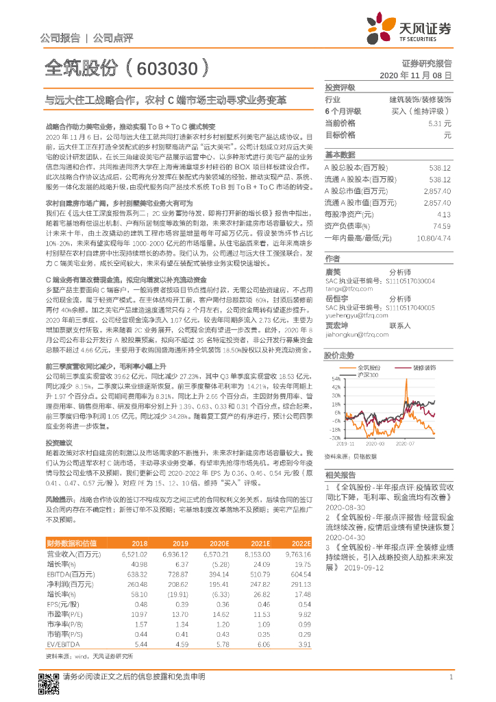 天风证券:全筑股份(603030)-与远大住工战略合作,农村C端市场主动寻求业务变革.pdf