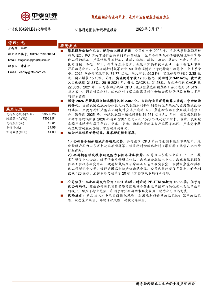 中泰证券:一诺威(834261)-聚氨酯细分行业领军者,海外市场有望成为新发力点.pdf