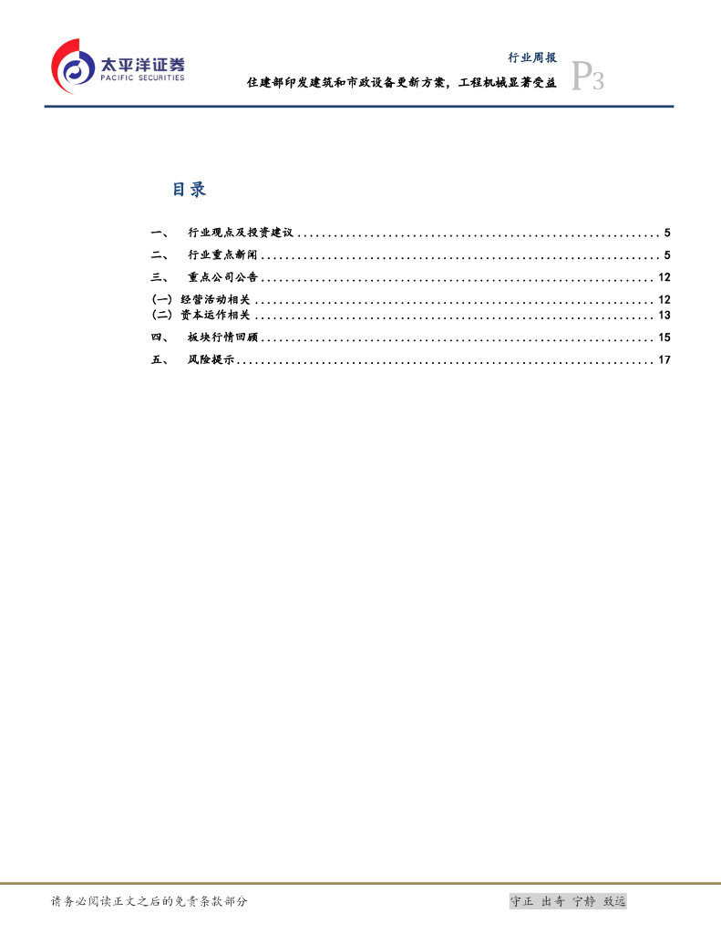 太平洋证券:机械行业周报:住建部印发建筑和市政设备更新方案,工程机械显著受益.pdf