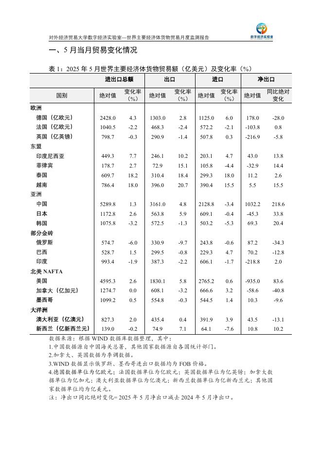 对外经济贸易大学:世界主要经济体货物贸易月度监测报告(2025年1-5月).pdf
