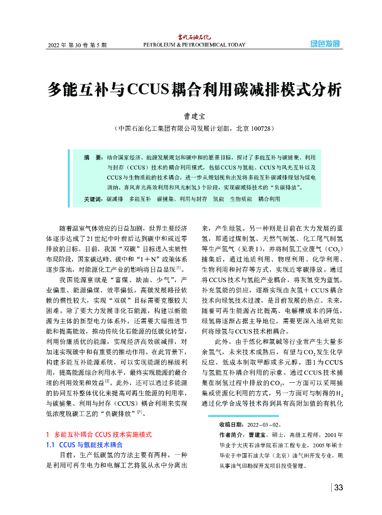 多能互补与CCUS耦合利用碳减排模式分析.pdf
