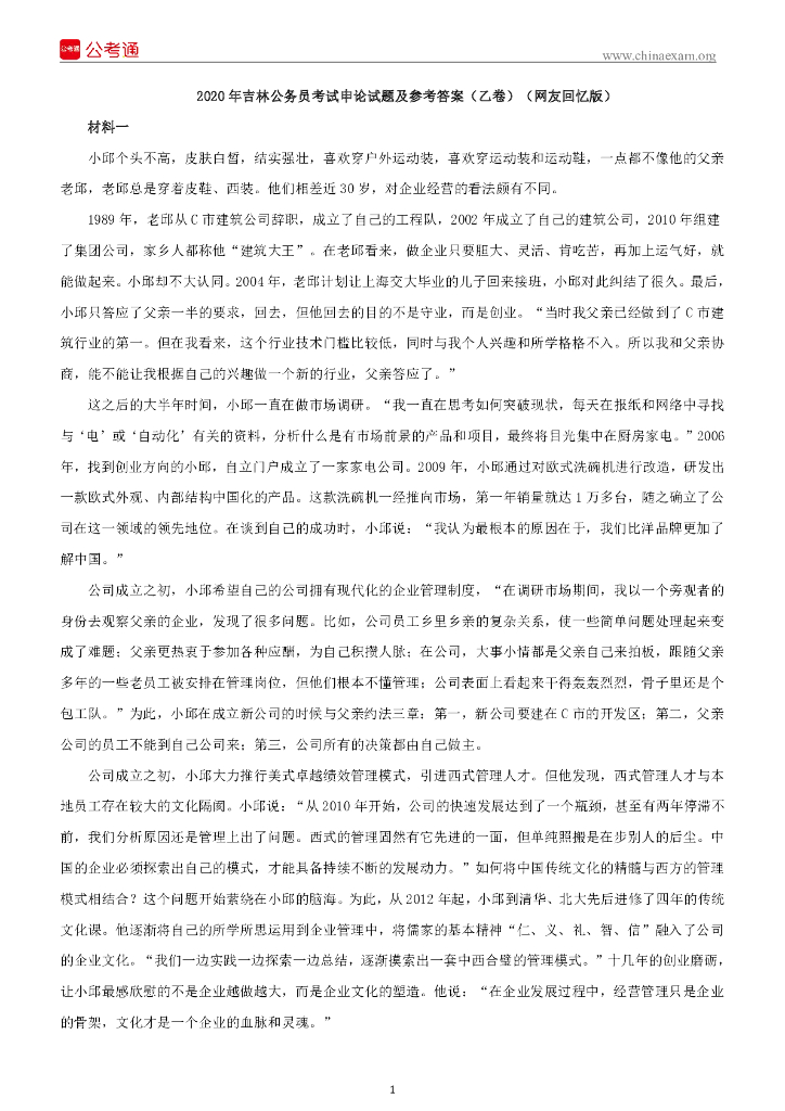 2020年吉林公务员考试申论试题及参考答案(乙卷).pdf