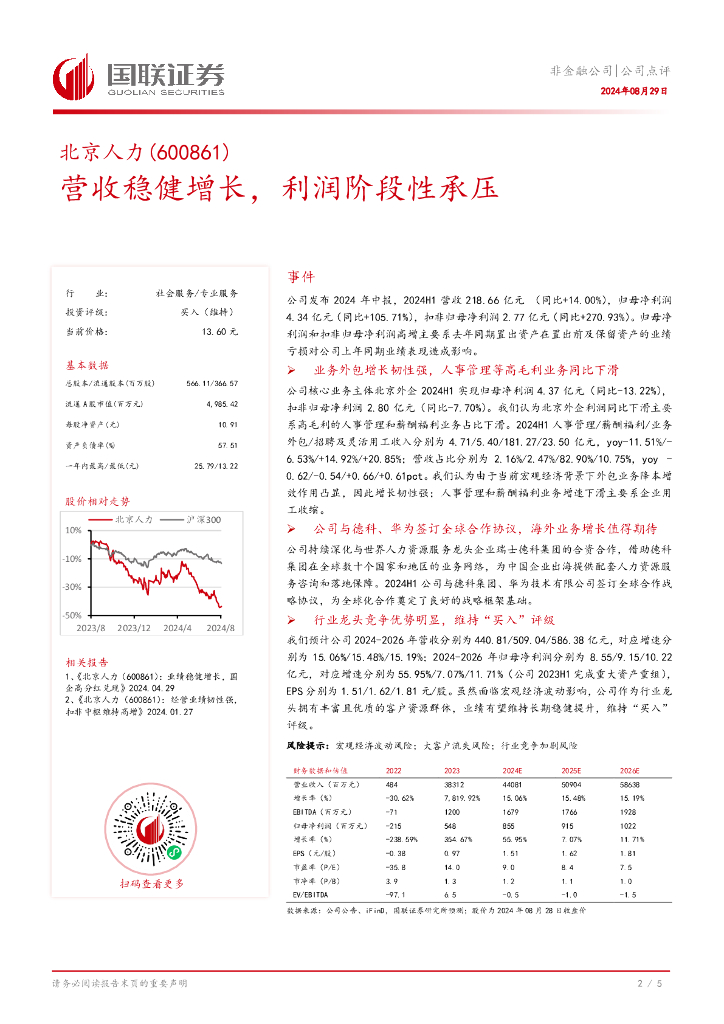 国联证券:北京人力(600861)-营收稳健增长,利润阶段性承压.pdf
