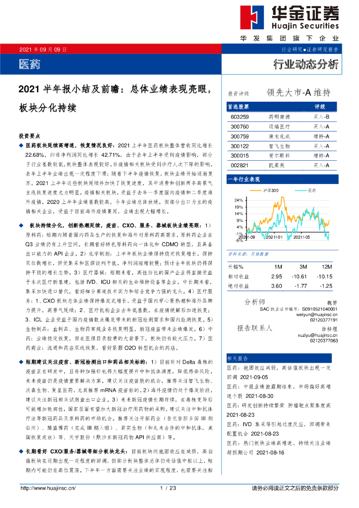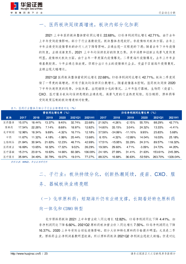 华金证券:医药行业2021半年报小结及前瞻:总体业绩表现亮眼,板块分化持续.pdf