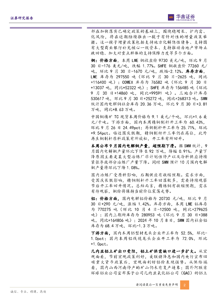 华鑫证券:有色金属行业周报:增量财政政策将陆续出台,工业金属价格有支撑.pdf