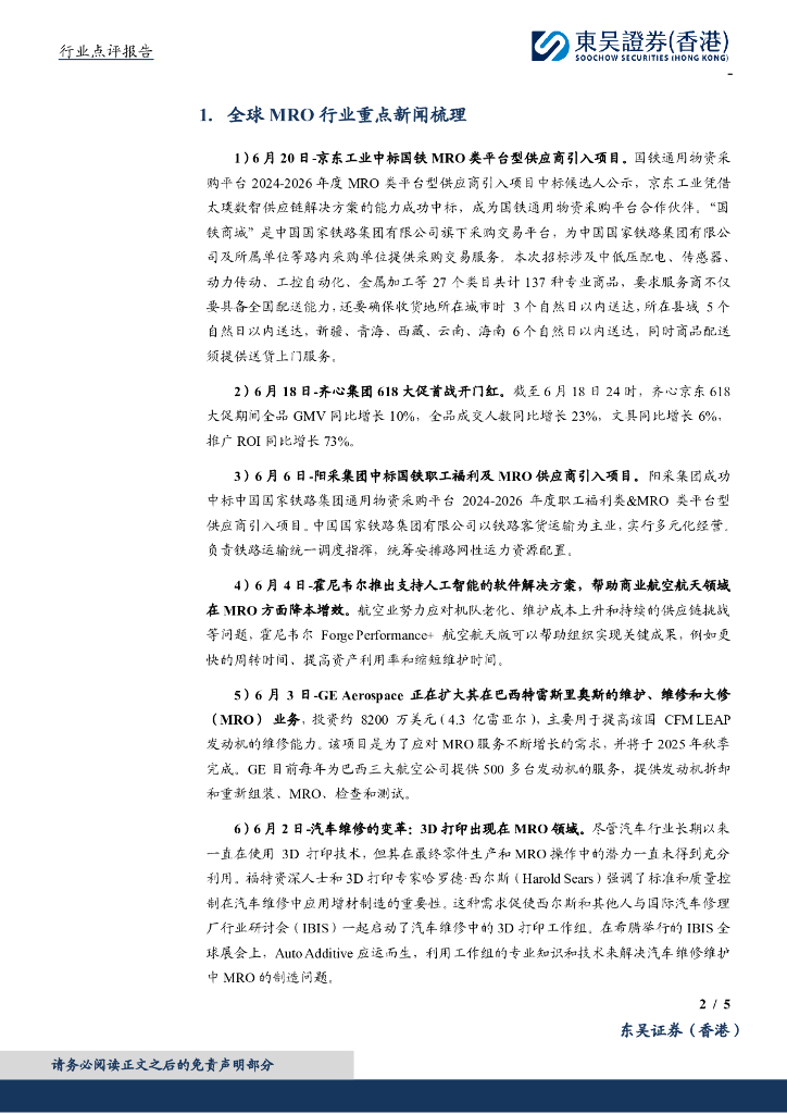 东吴证券国际经纪:MRO行业新闻跟踪点评报告:2024年6月全球MRO重点新闻梳理.pdf