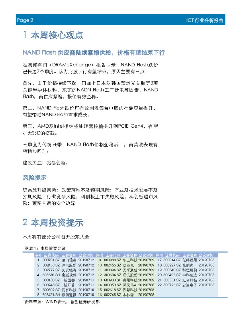 首创证券:ICT行业周报:NAND Flash供应商陆续紧缩供给,价格有望结束下行.pdf