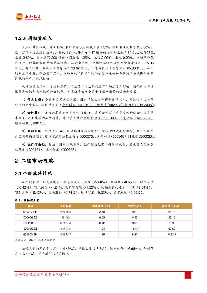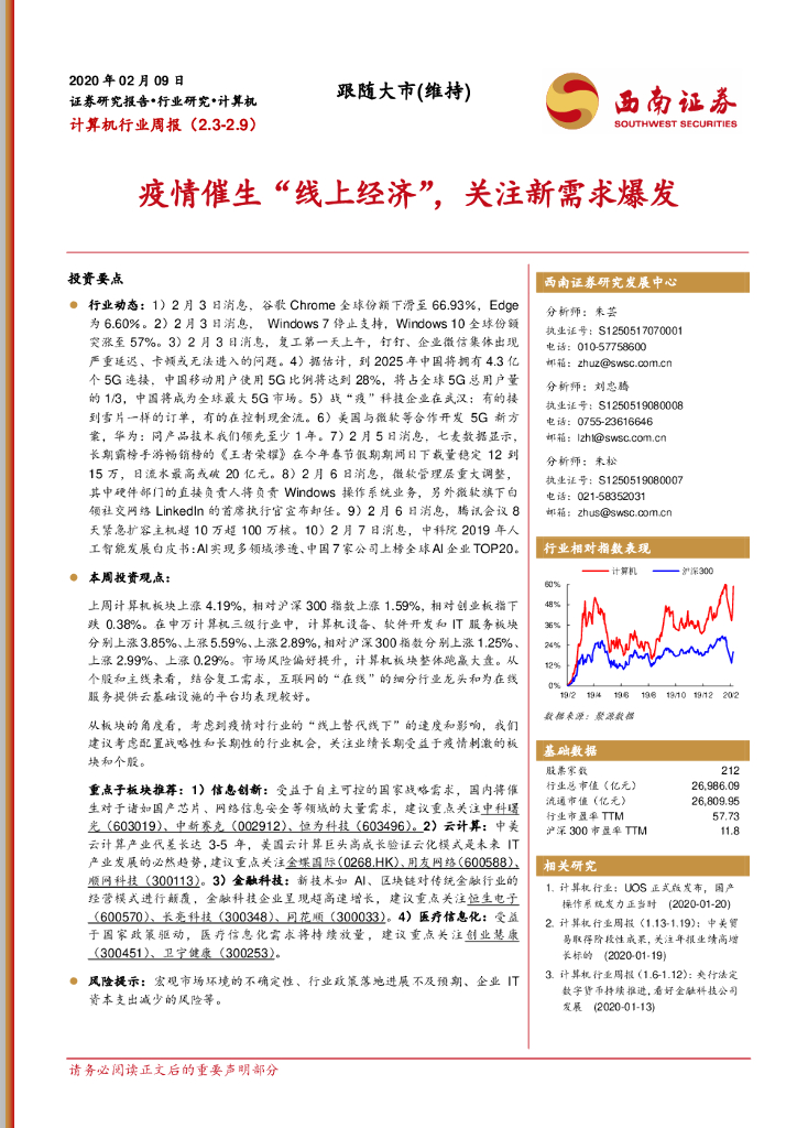 西南证券:计算机行业周报:疫情催生“线上经济”,关注新需求爆发.pdf