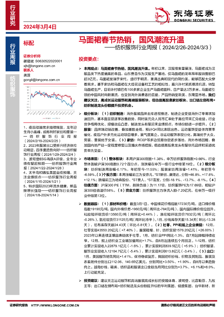 东海证券:纺织服饰行业周报:马面裙春节热销,国风潮流升温.pdf