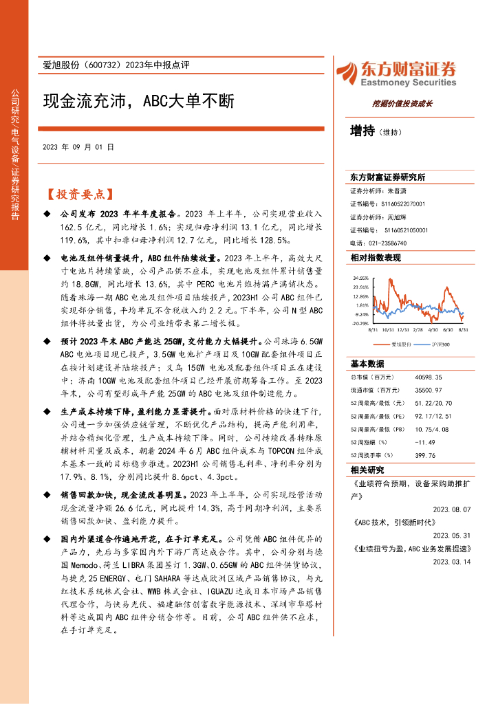 东方财富证券:爱旭股份(600732)-2023年中报点评:现金流充沛,ABC大单不断.pdf