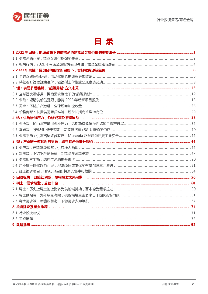民生证券:民生金属2022年年度策略系列报告之能源金属篇:再探供需的脉搏,拥抱能源革命的长周期增长机遇.pdf