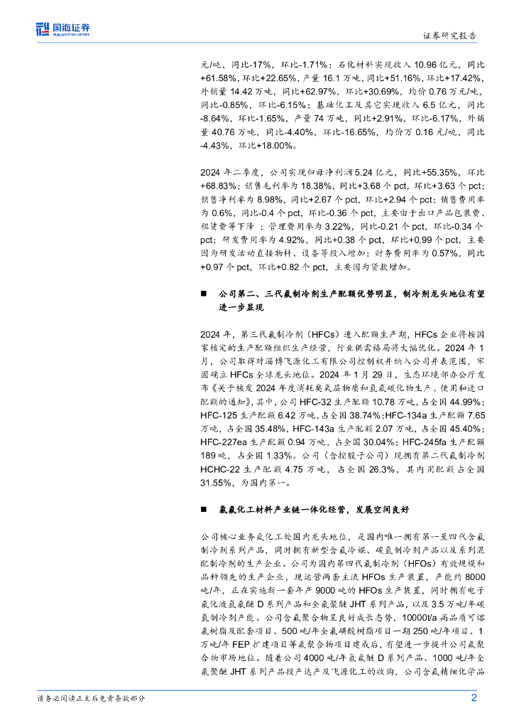 国海证券:巨化股份(600160)-公司点评:2024Q2业绩同环比增加,制冷剂生产配额优势明显.pdf