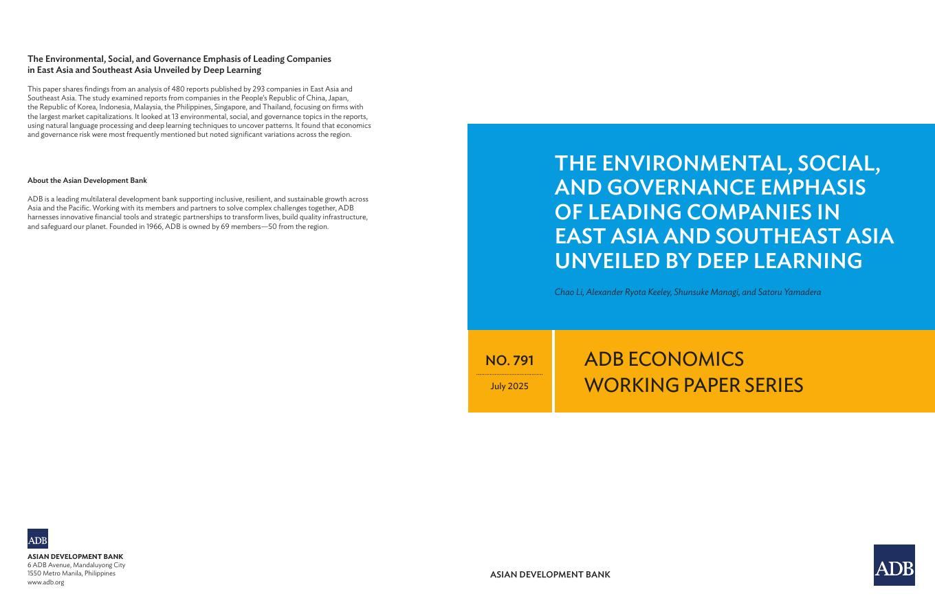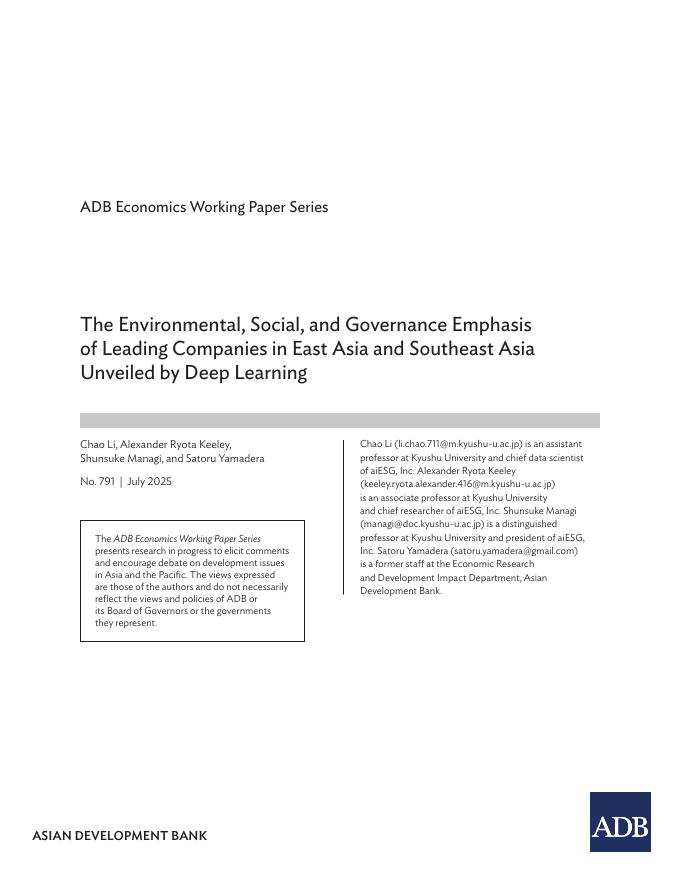 ADB亚洲开发银行:深度学习揭示东亚和东南亚领先公司的环境、社会和治理重点(英文版).pdf