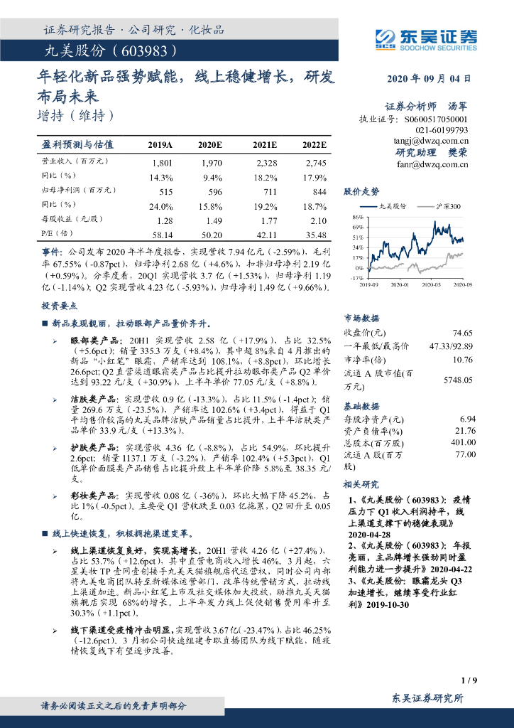 东吴证券:丸美股份(603983)-年轻化新品强势赋能,线上稳健增长,研发布局未来.pdf