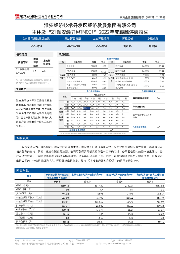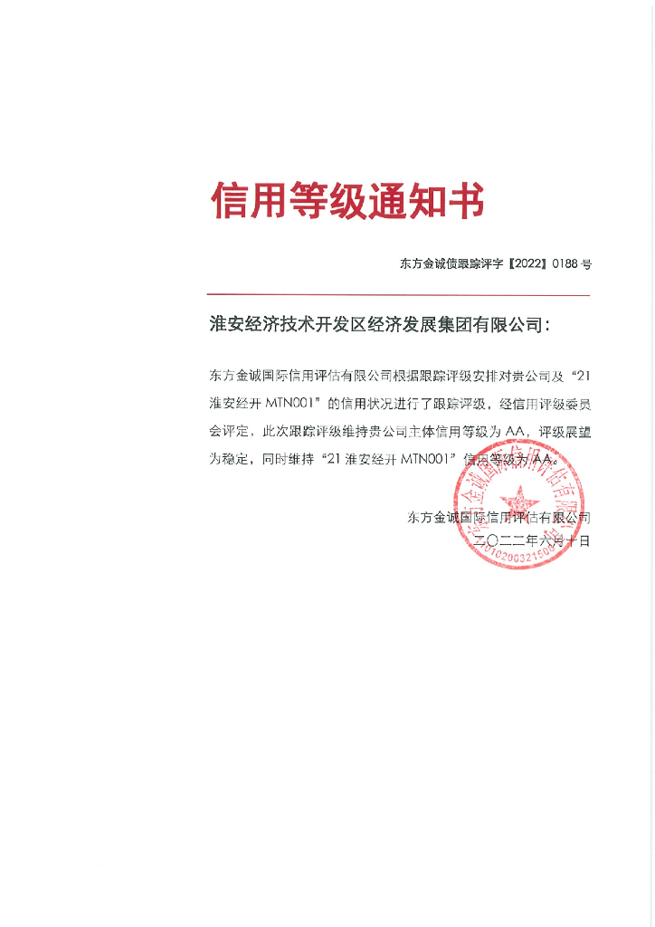 东方金诚:淮安经济技术开发区经济发展集团有限公司主体及“21淮安经开MTN001”2022年度跟踪评级报告.pdf
